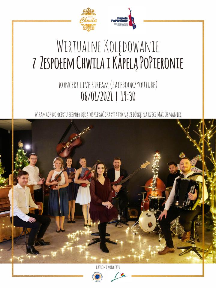 W dniu 06 I 2021 r. (śr) o godz. 19:30 rozpocznie się koncert w formie Live Stream, który będzie transmitowany na kanałach społecznościowych zespołów (Facebook/YouTube).