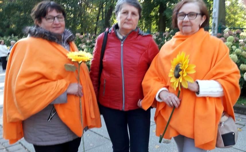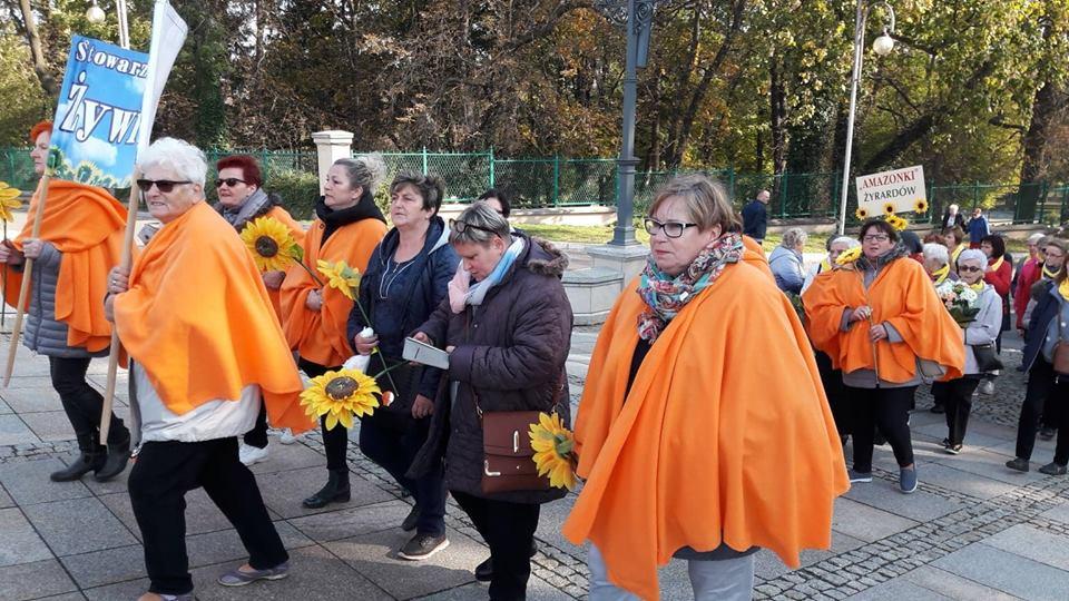 Co roku w każdą pierwszą sobotę października bierzemy udział w pielgrzymce do Częstochowy, w której uczestniczy tysiące amazonek ze słonecznikami z całej Polski, Niemiec i ze Słowacji. Słonecznik to symbol amazonek. Moim marzeniem jest, by w przyszłych latach 1 para od nas pojechała do Częstochowy w stroju górali żywieckich. Chcielibyśmy pożyczyć stój od Asysty Żywieckiej. Wspomnę tutaj, że nasze Stowarzyszenie ma własne poncza. Wybrałyśmy kolor pomarańczowy. Jesteśmy dumne z tego, że zostałyśmy w nich dostrzeżone, co widać na zdjęciach z pielgrzymki: