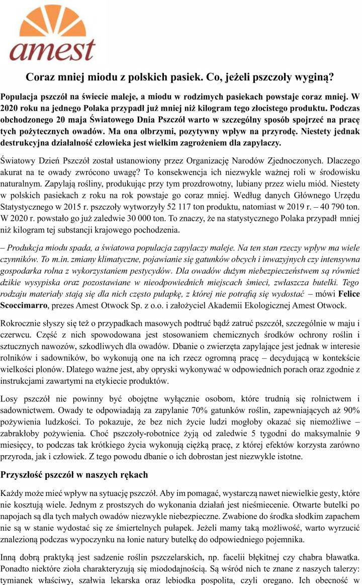 Coraz mniej miodu z rodzimych pasiek. Co, jeśli pszczoły wyginą? Opublikowano wtorek, 20 05 2025 Utworzono: wtorek, 20 05 2025 Udostępnij Drukuj E-mail Poprzedni artykuł Następny artykuł