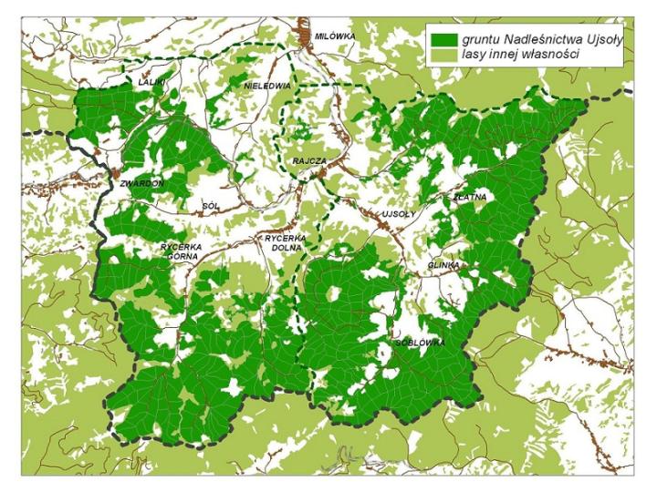 źródło: Mapa sytuacyjna Nadleśnictwa Ujsoły