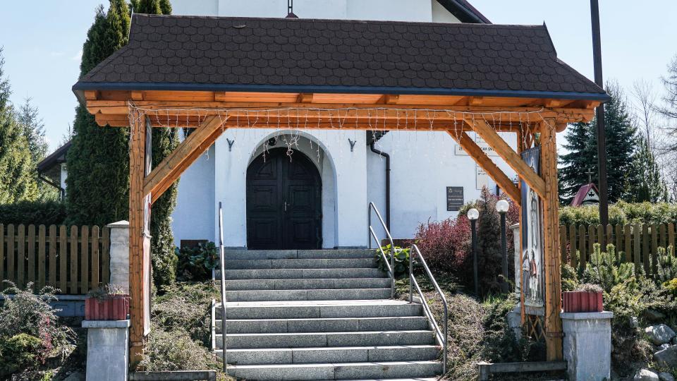 Nowy kościół poświęcił 4 VI 1987r ks. kardynał Franciszek Macharski odprawiając pierwszą Mszę św. ku czci Zesłania Ducha Świętego. W czerwcu 1992r poświęcone zostały przez ks. bpa Tadeusza Rakoczego dzwony, na które parafianie składali się przez 2 lata. W 2002 roku rzeźbiarz z Białki Tatrzańskiej wykonał stacje drogi krzyżowej, która została poświęcona w czasie wizytacji przez ks. bpa T. Rakoczego. Następnego roku kamieniarz z Węgierskiej Górki wykonał dla naszego kościoła z marmuru ambonkę, chrzcielnicę i wykończył ołtarz soborowy. Ks. Stanisław Czernik polecił nam młodego, zdolnego rzeźbiarza z Białego Dunajca, p. Tadeusza Franosza, który wykonał z drzewa lipowego płaskorzeźbę ołtarzową przedstawiającą scenę Zesłania Ducha Świętego. Projekt tej rzeźby zrobiła siostra Teofora ze Zgromadzenia SS. Boromeuszek. Dziełem tego rzeźbiarza jest także popiersie Jana Pawła II. W marcu b.r. stolarz z Koniakowa wykonał sedilia do prezbiterium.